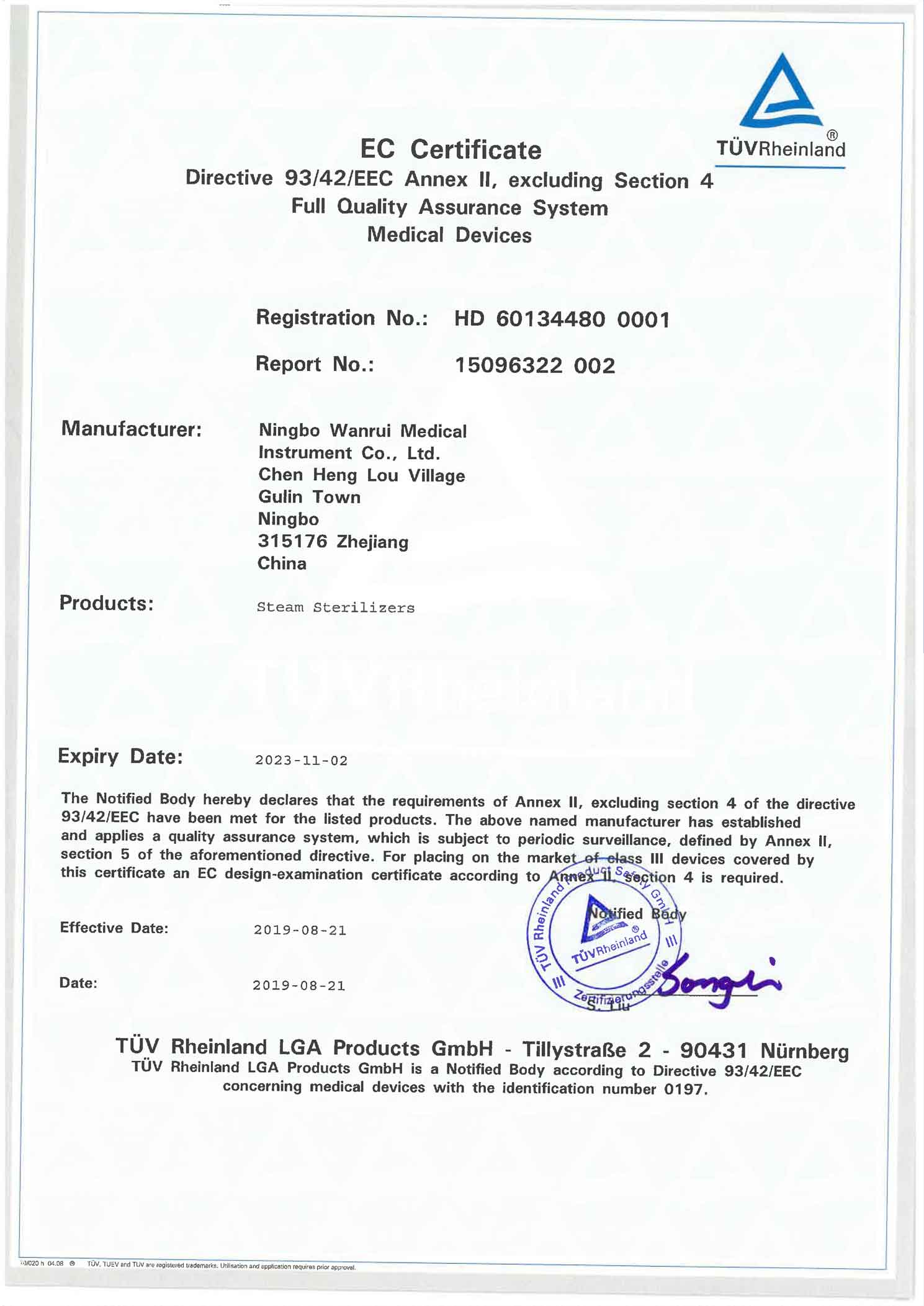 Nos produits d'autoclave de stérilisateur médical ont passé la gestion de la qualité ISO9001, ISO13485