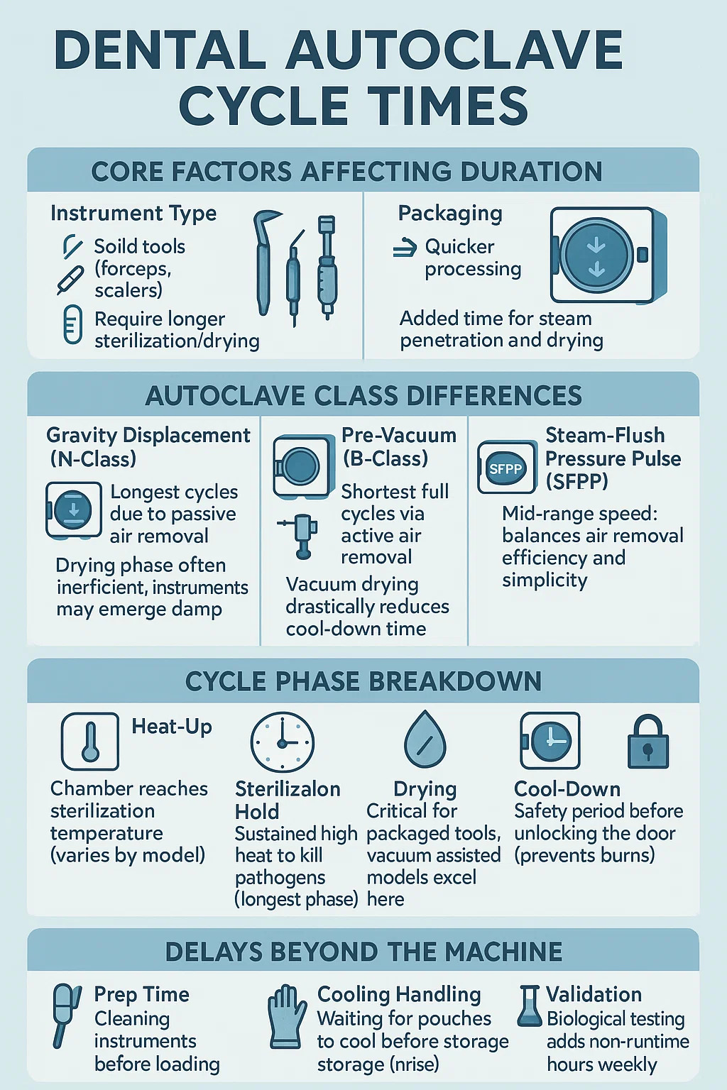 Voici une répartition de autoclave dentaire temps de cycle, en se concentrant sur des facteurs pratiques :