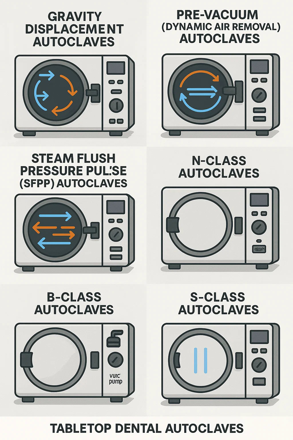 | Impulsion de pression de rinçage à la vapeur | Les impulsions de vapeur chassent l'air de la chambre | Charges poreuses, instruments étroitement emballés | Cliniques à volume moyen nécessitant de la polyvalence |