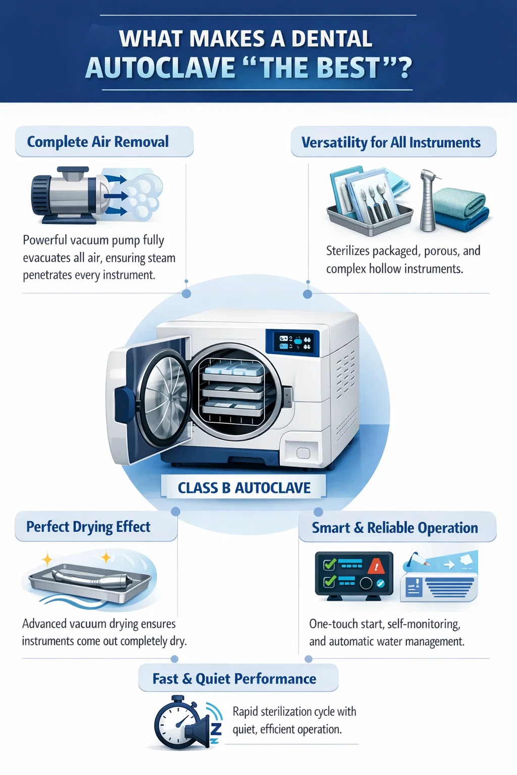 Juger si un autoclave dentaire appartient à la catégorie « meilleur » peut être réalisé à partir des perspectives pratiques suivantes :