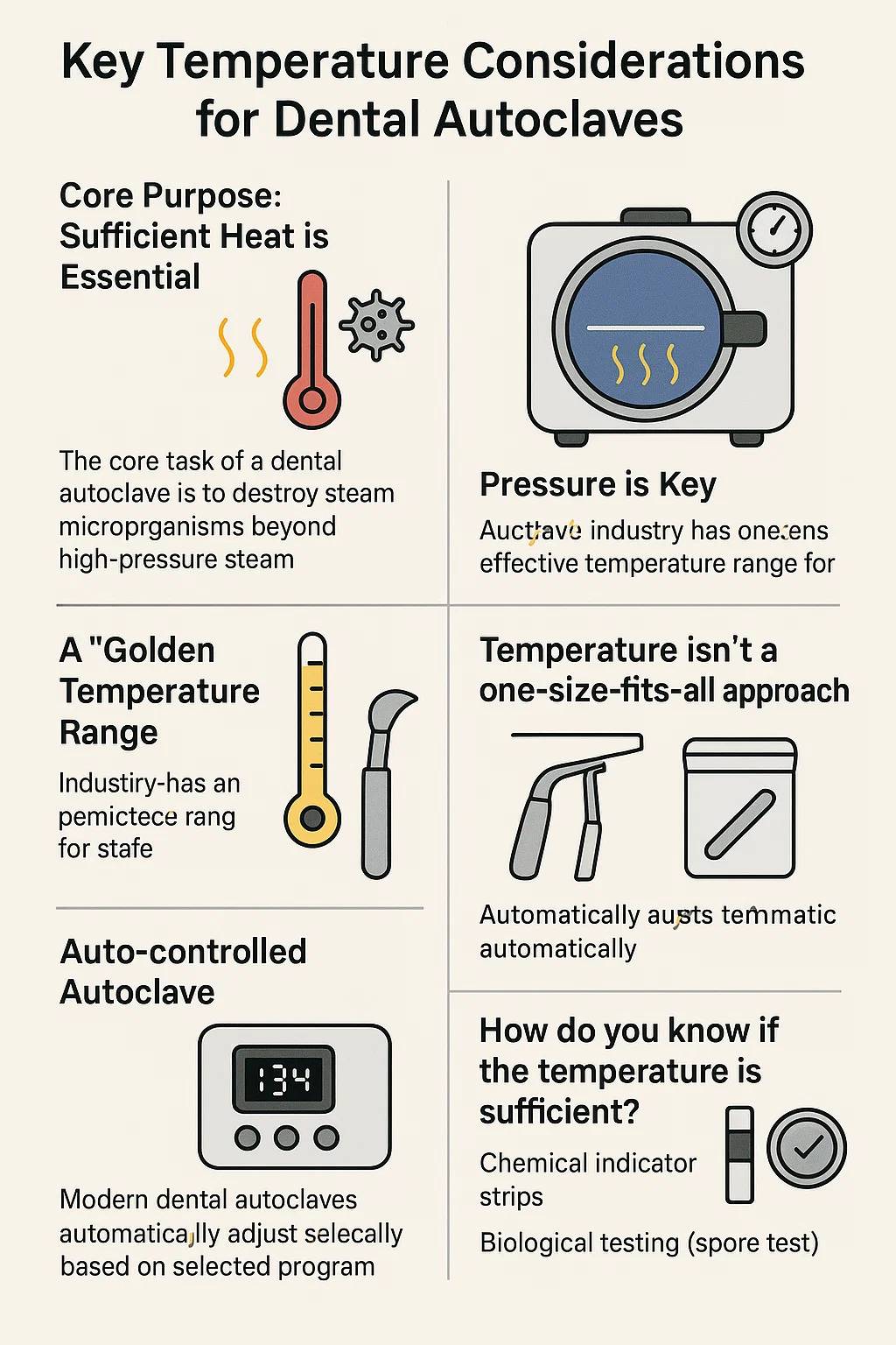 Grâce à une pratique à long terme, l’industrie dentaire a identifié une plage de températures universellement acceptée et efficace pour la stérilisation.